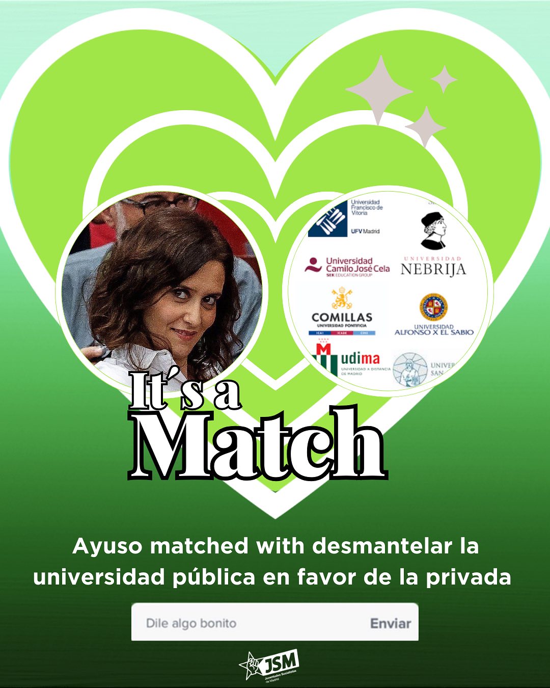 Campañas Día de San Valentín – Los flechazos de Ayuso 14 de febrero de 2025 FacebookTwitterPinterestWhatsAppLinkedinTelegram En este San Valentín os mostramos los flechazos de Ayuso por la mala gestión. Comparte estas publicaciones en nuestras redes sociales: Facebook Instagram X 1 de 8