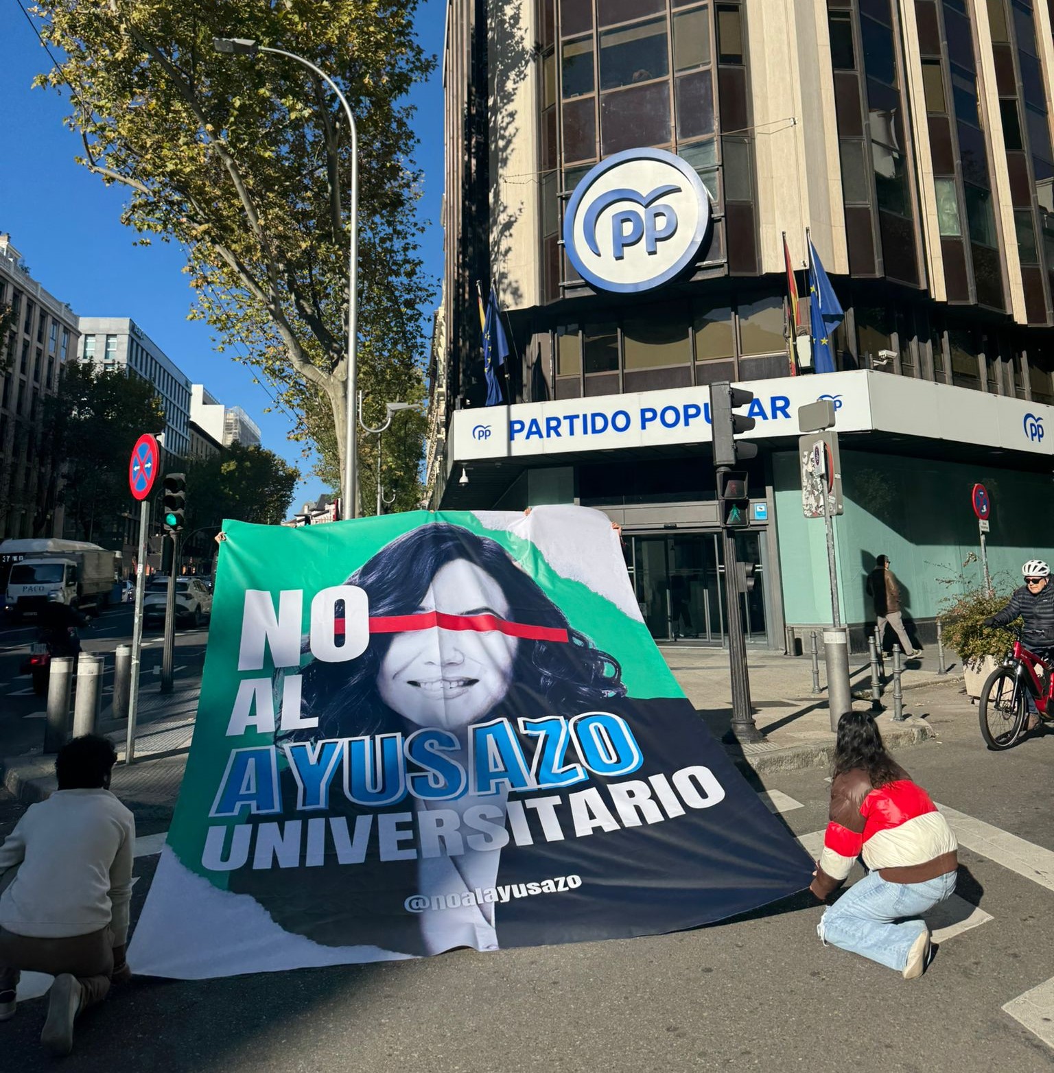 Hoy hemos ido a la sede del PP en Madrid y a la Puerta del Sol para que a Isabel Díaz Ayuso le quede claro que no daremos ni un paso atrás en la defensa de la universidad pública.