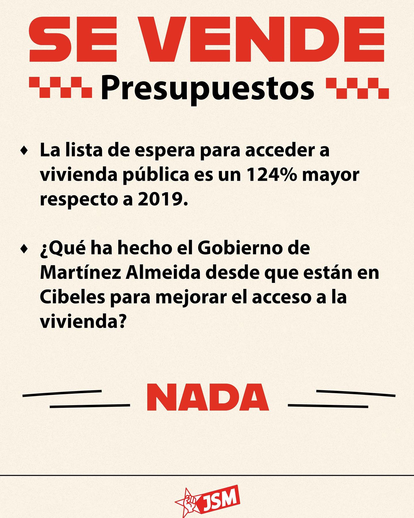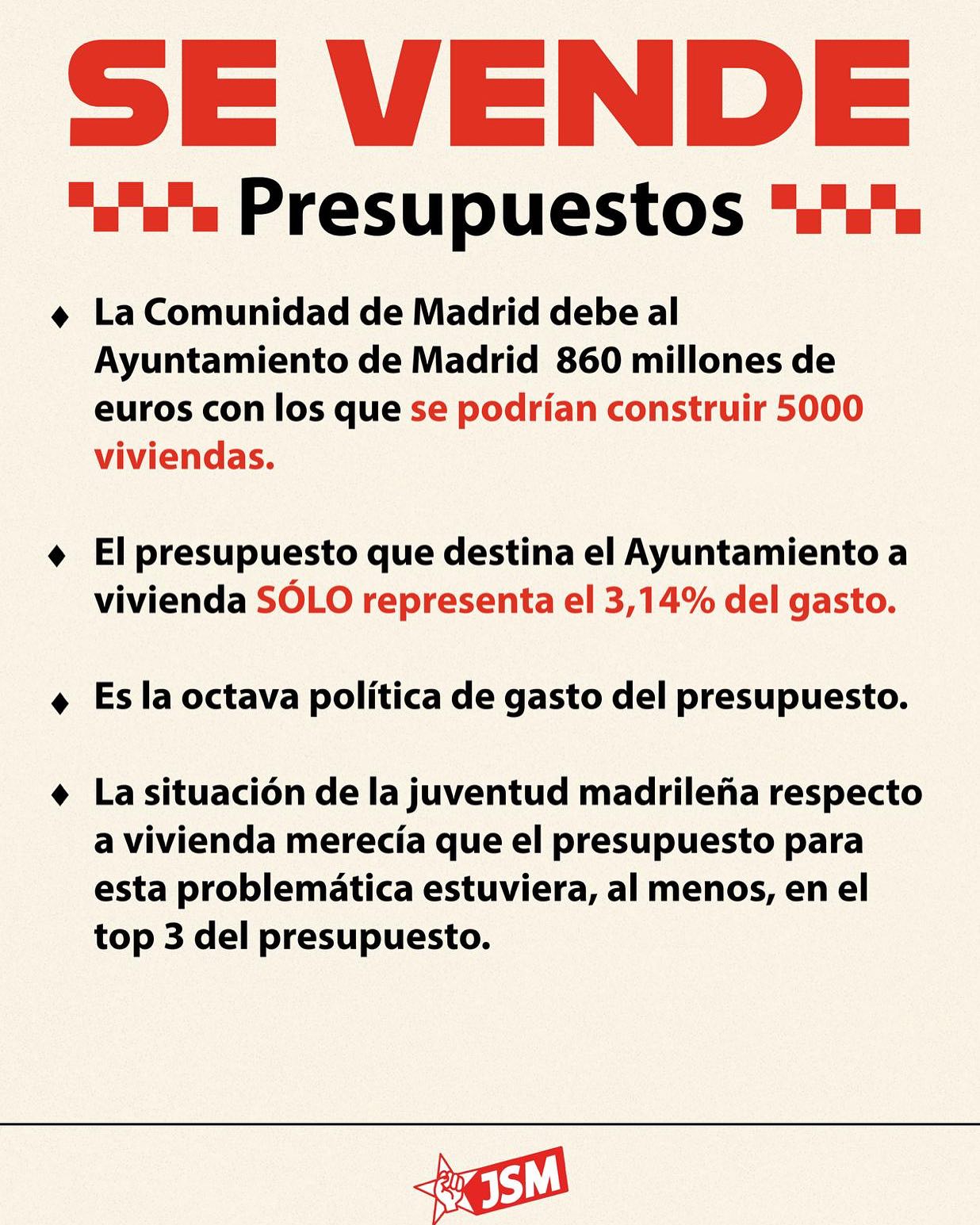 El Ayuntamiento de Madrid celebra hoy su pleno de presupuestos. Nosotras no tenemos nada que celebrar porque la situación de la vivienda en nuestra ciudad es insostenible. ¡Una vergüenza! Te lo contamos con datos.