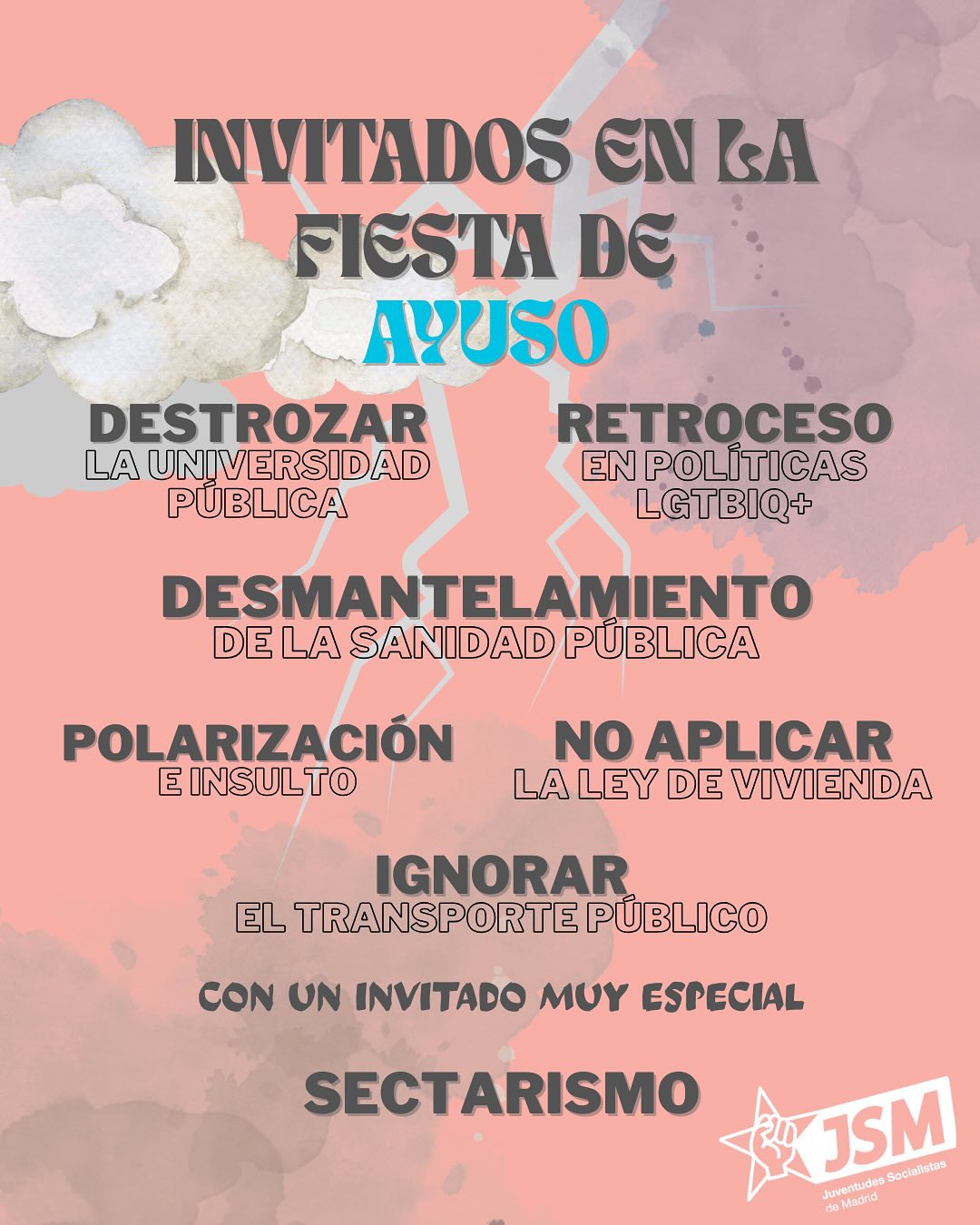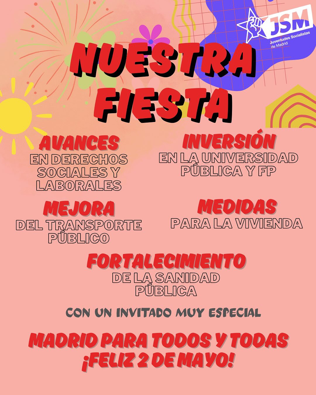 Juventudes Socialistas de Madrid conmemora el Día de la Comunidad de Madrid subrayando las medidas que esperan los madrileños y madrileñas de la presidenta. No nos ha invitado a su fiesta… pero tampoco queremos ir.