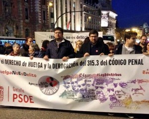 El pasado 11 de febrero las Juventudes Socialistas de la Comunidad de Madrid estuvimos presentes e la manifestación para defender el derecho a huelga y por la derogación del artículo 315.3 del Código Penal #HuelgaNoEsDelito