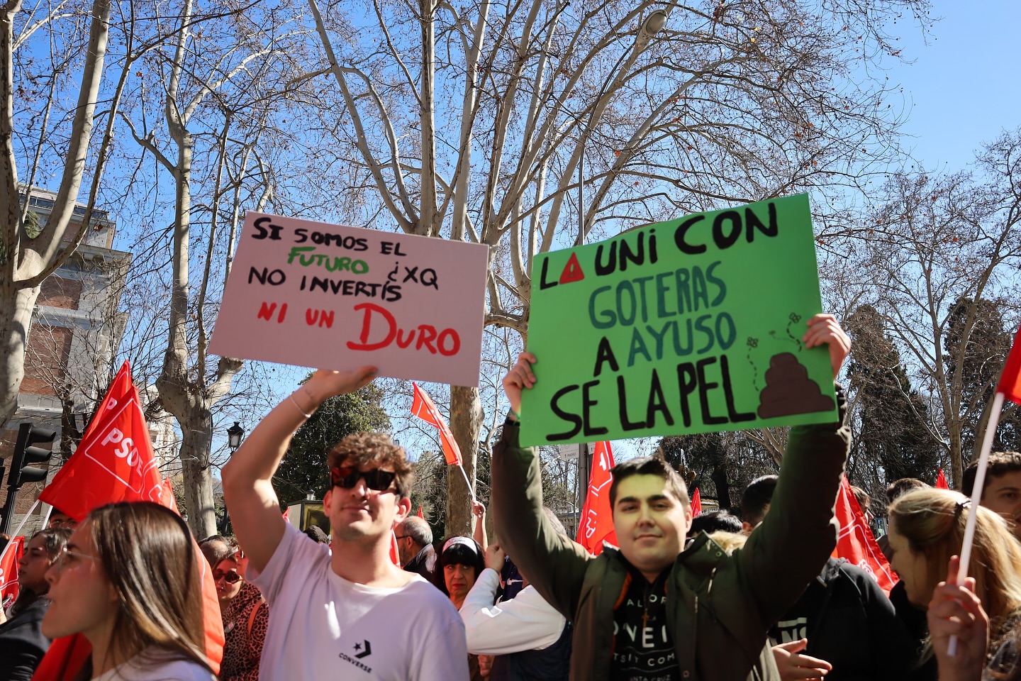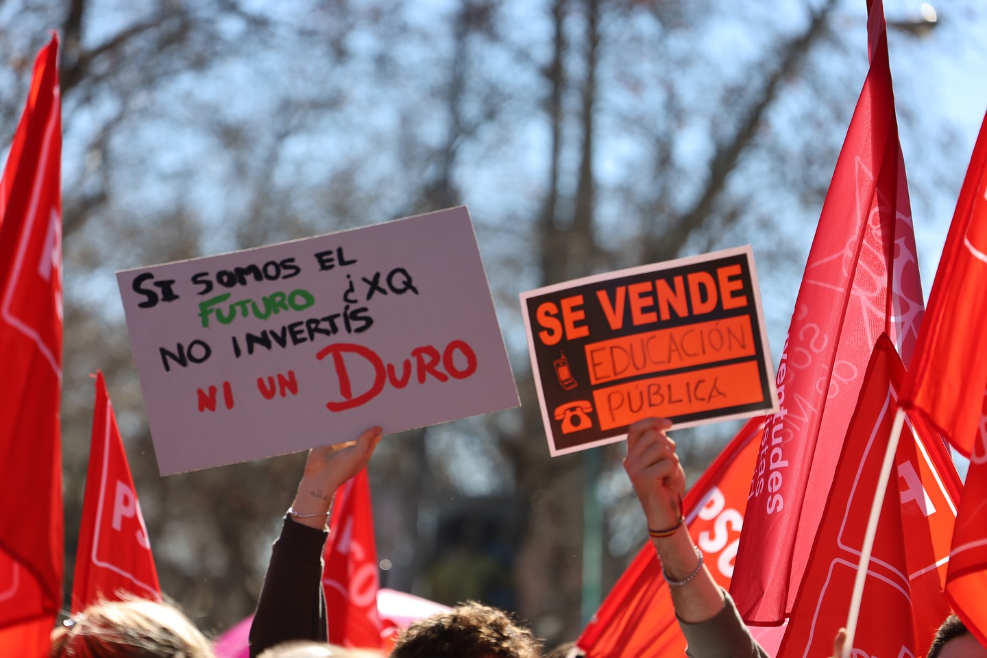 Salimos a las calles de Madrid para defender la EDUCACIÓN PÚBLICA, ¡basta ya! Gritamos BASTA ya de tanta precariedad, de falta de inversión, de no cuidar al alumnado, ni al profesorado. ¡Basta ya de un Gobierno del Partido Popular de Ayuso que usa Madrid como su cortijo privado y lucrativo con nuestra educación!